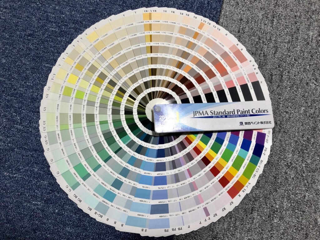 PCでのカラーシミュレーション、実際に使用する塗料を塗ったサンプルボードの活用、