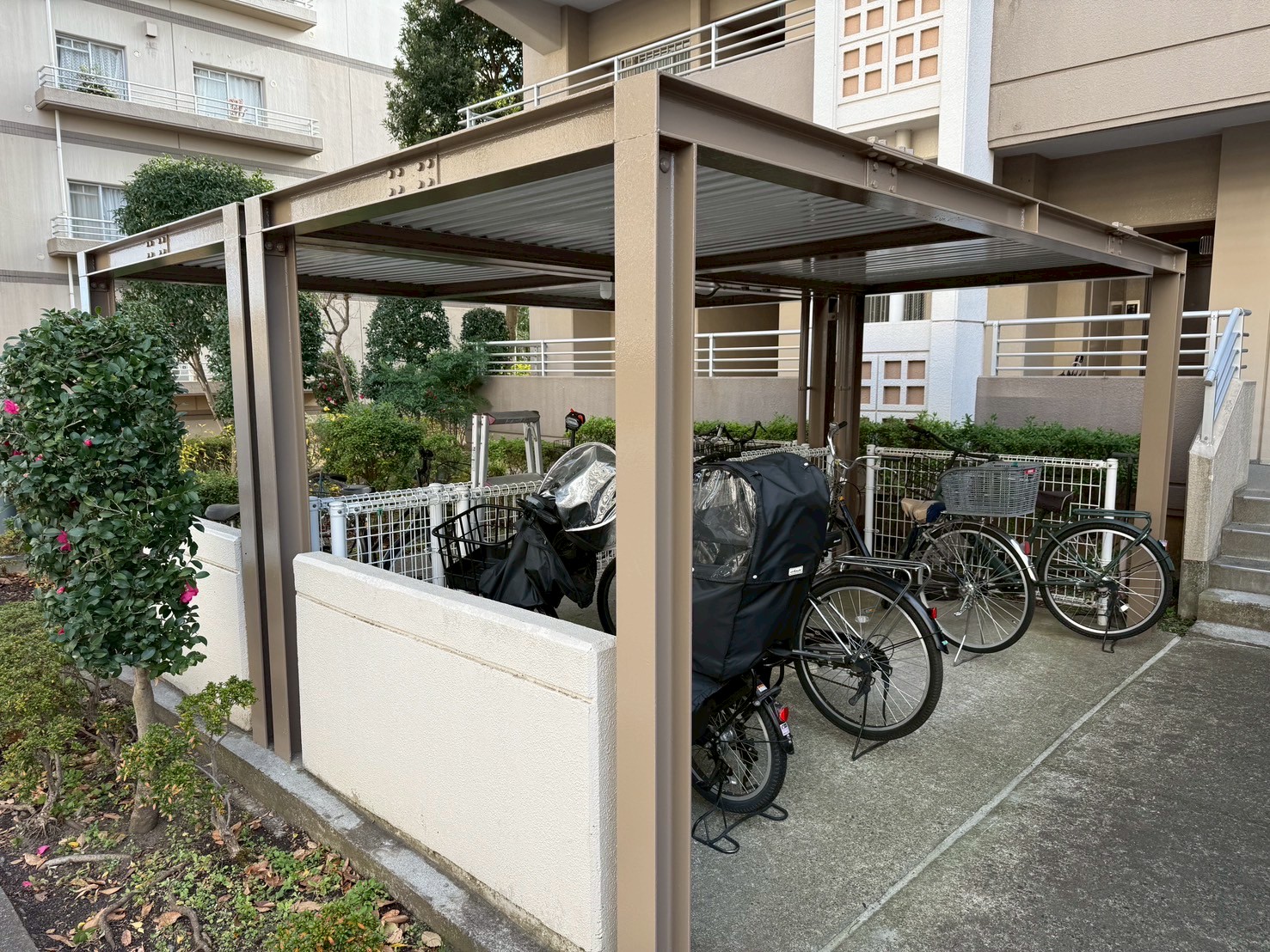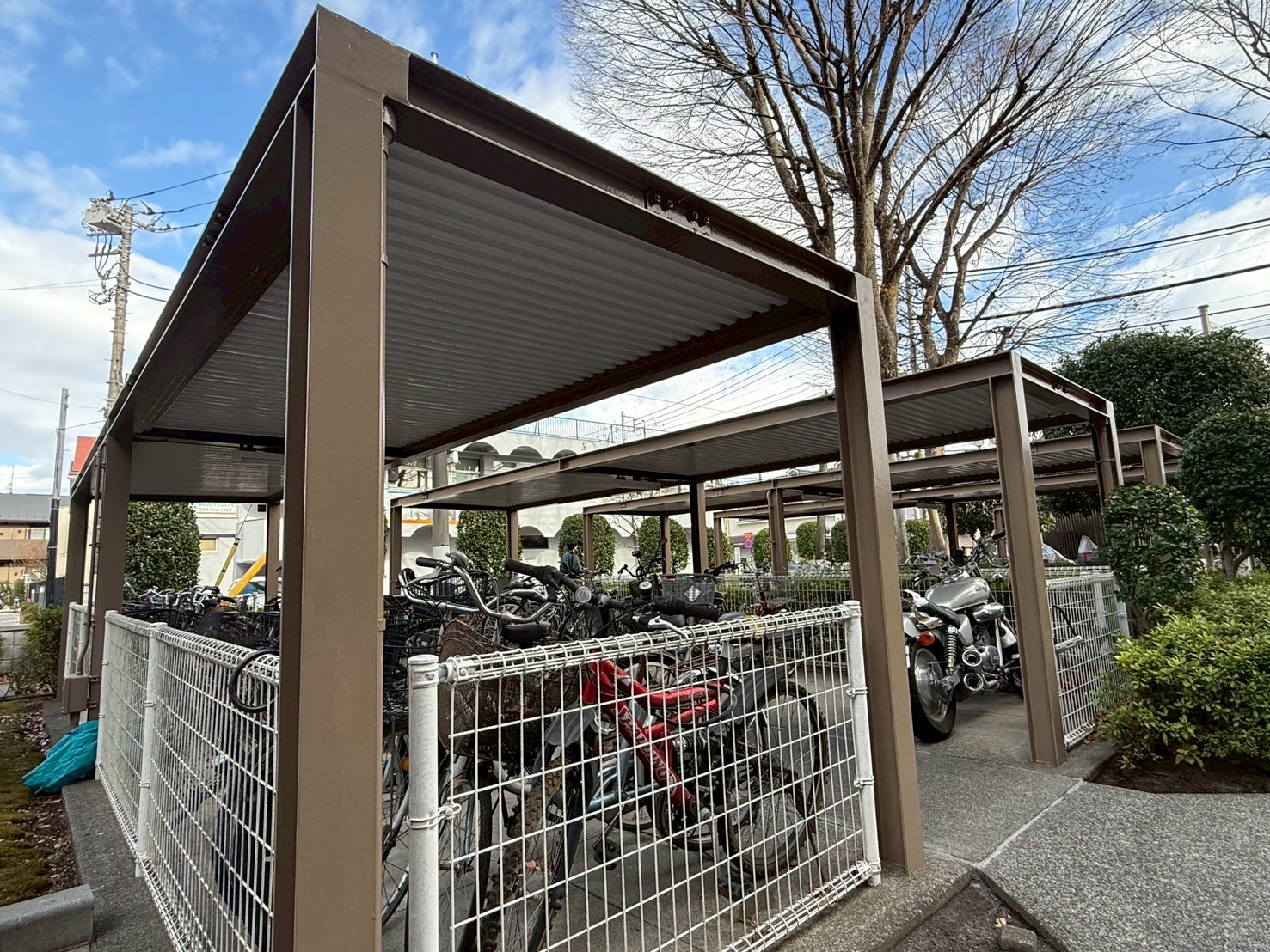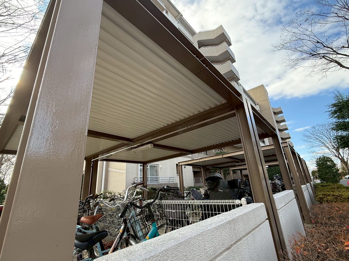 東京都府中市にて公共工事として、府中グリーンハイツ内駐輪場再塗装工事を施工いたしました。駐輪場およびフェンスの塗装工事を行うとともに、インターロッキングやコンクリート部分の高圧洗浄を実施し、施設全体の美観回復と保全を図っています。