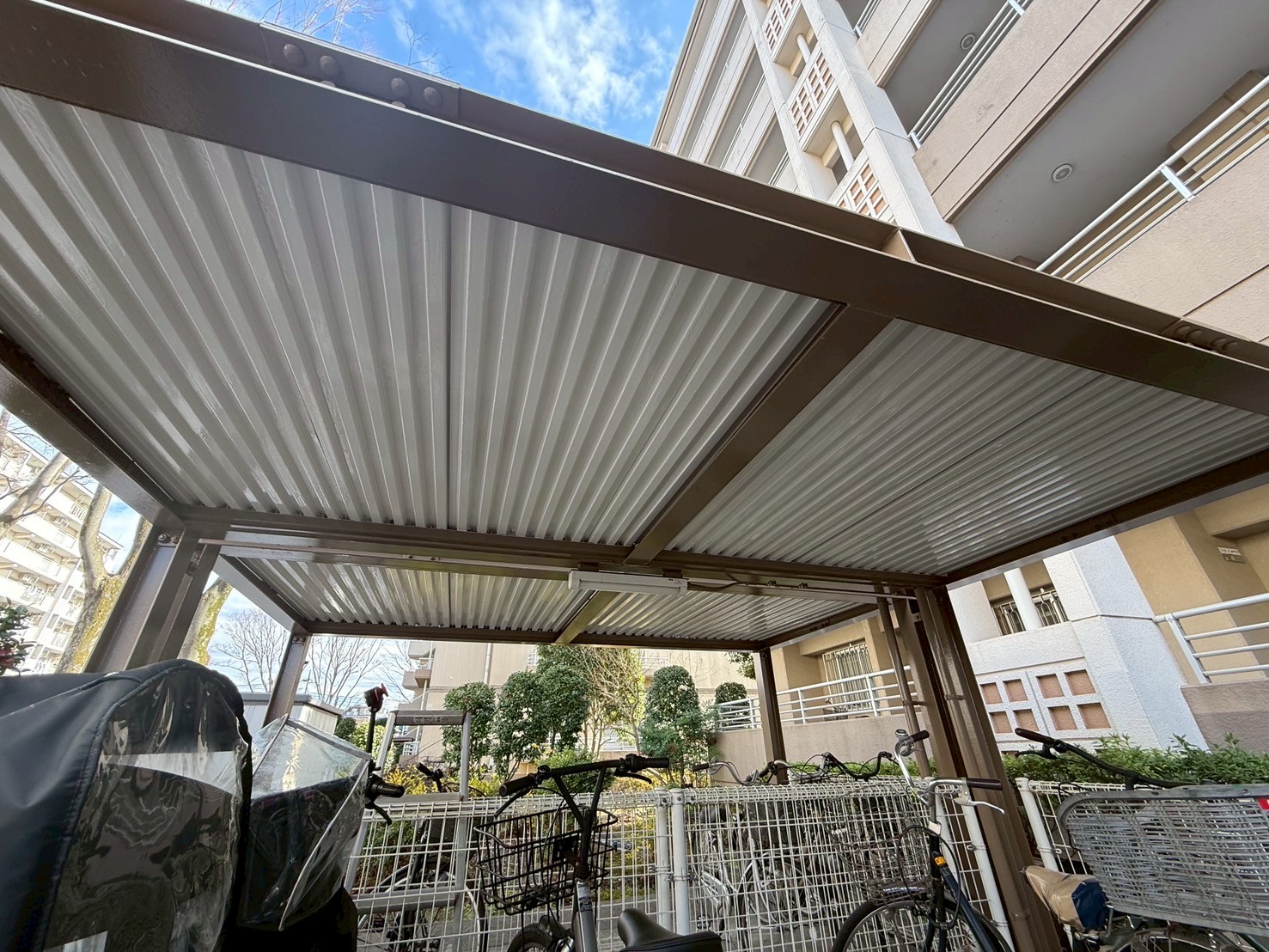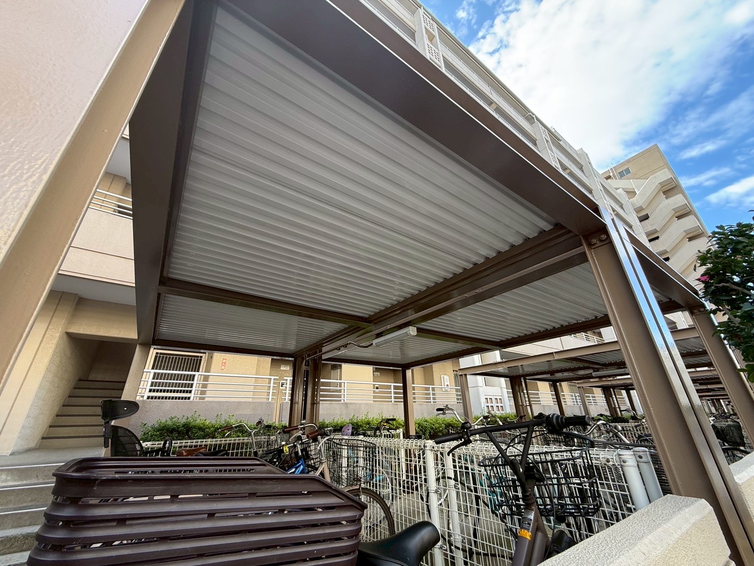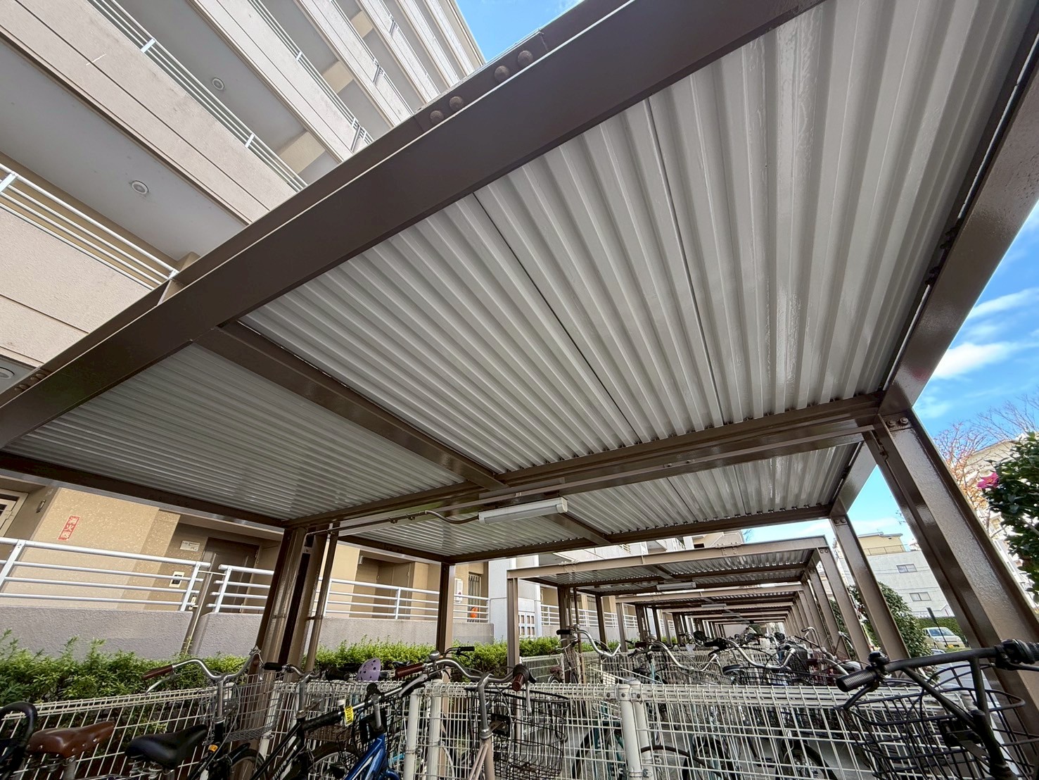東京都府中市にて公共工事として、府中グリーンハイツ内駐輪場再塗装工事を施工いたしました。駐輪場およびフェンスの塗装工事を行うとともに、インターロッキングやコンクリート部分の高圧洗浄を実施し、施設全体の美観回復と保全を図っています。