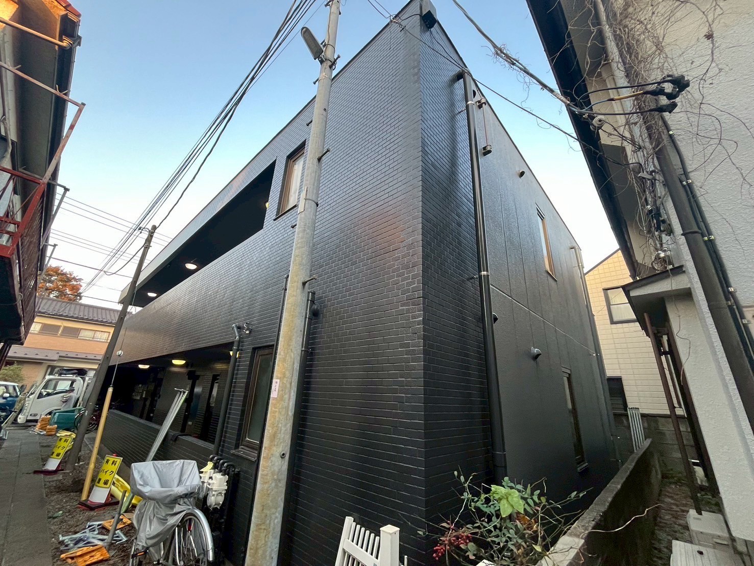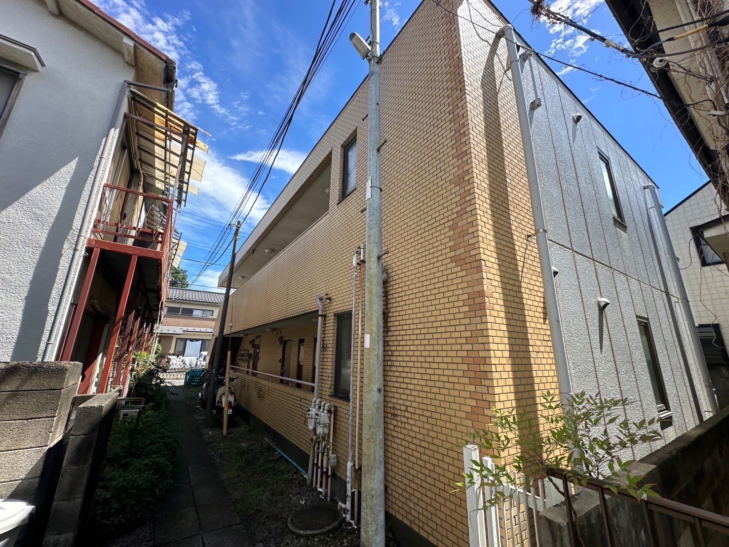 外壁は磁器タイル面であったため、専用下塗材であるSK#2000プライマーを使用することで下地との密着性を確保し、これまで施工が難しかった磁器タイル面への塗装を可能としました。下地状況を確認しながら適切な工程で施工し、外観の改善と外壁保護性能の向上を図っています。
