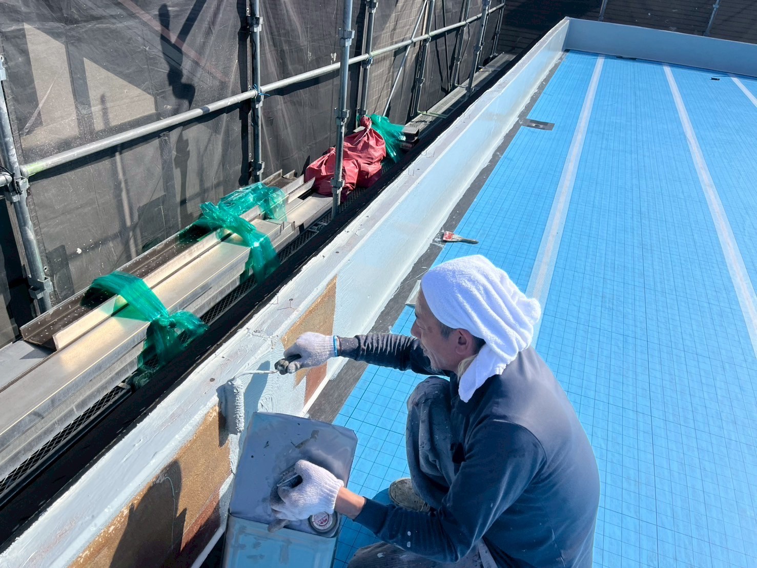 | 使用材料 | SK#2000プライマー クリーンマイルドシリコン アレスセラマイルド コスミックPRO12・ゼロ CAマットSB CMメッシュテープ CA端末テープ ステンレスベントN(脱気装置) LF改修ドレン LF改修ドレン用ドレンキャップ |