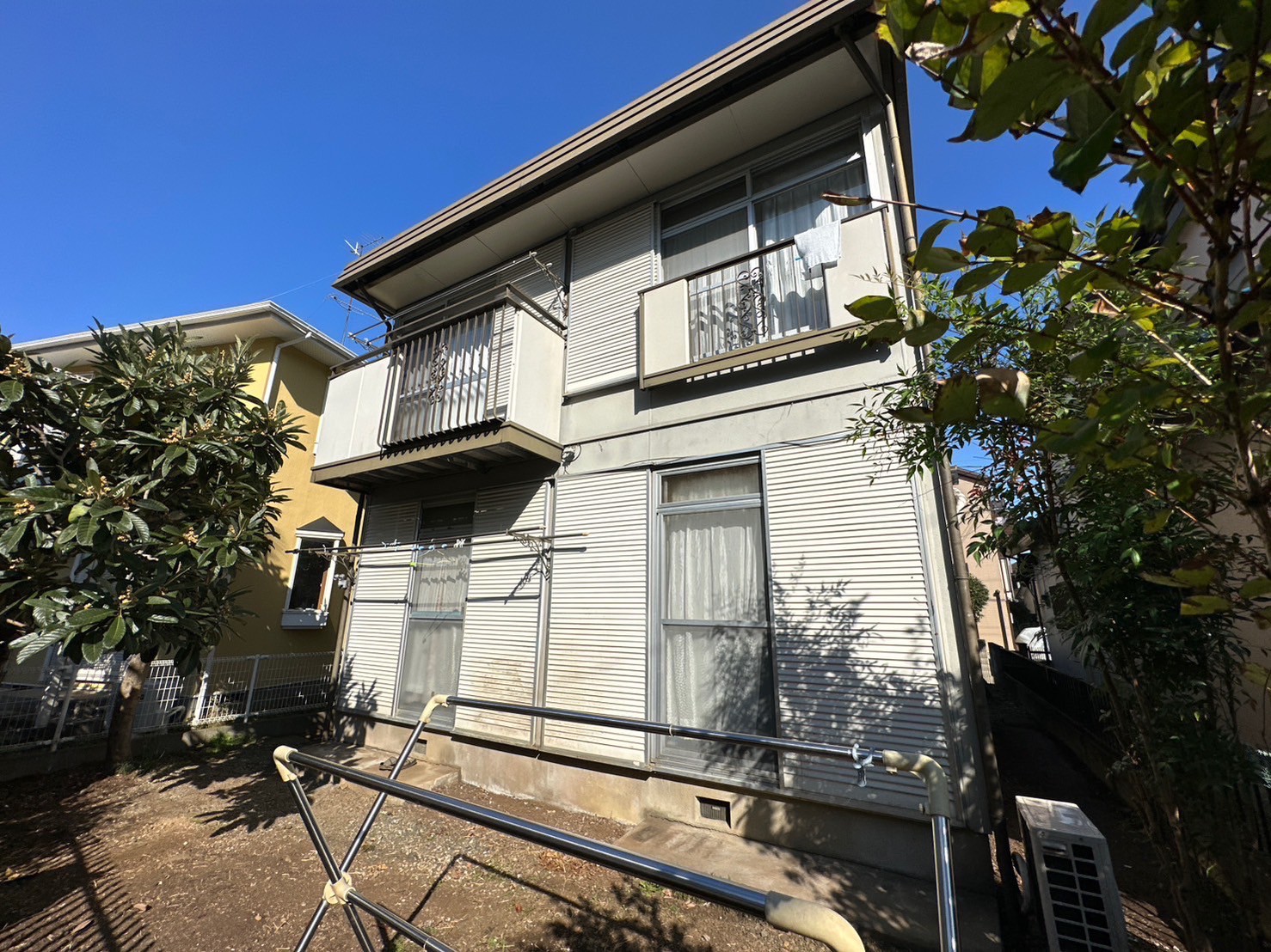 題名 Uアパート修繕工事 場所 東京都清瀬市 施工内容 外壁塗装・折半屋根塗装・付帯部塗装・シーリング工事 使用材料 保証期間 コメント Uアパートにて外装修繕工事を実施いたしました。外壁塗装をはじめ、折半屋根塗装·付帯部塗装·シーリング工事を行い、建物全体の保護性能と美観の回復を図っています。 外壁および付帯部は下地状況を確認しながら適切な下地処理を行ったうえで塗装を施工し、折半屋根についても塗装により防錆性と耐久性の向上を図りました。また、シーリングの打替えを行うことで外装部の防水性能も改善しています。 建物の状態に合わせた工程にて施工を行い、長期的な建物保護につながる修繕工事となりました。